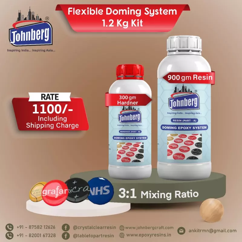 Epoxy doming resin is a clear and glossy coating used to create a smooth glasslike finish on various surfaces. It is often applied to stickers jewelry artwork and crafts to enhance appearance and provide protection. The resin is self leveling which means it spreads evenly on its own to form a rounded dome shape. Once cured it becomes hard durable and resistant to scratches and yellowing. It usually comes in two parts a resin and a hardener which are mixed together before use.