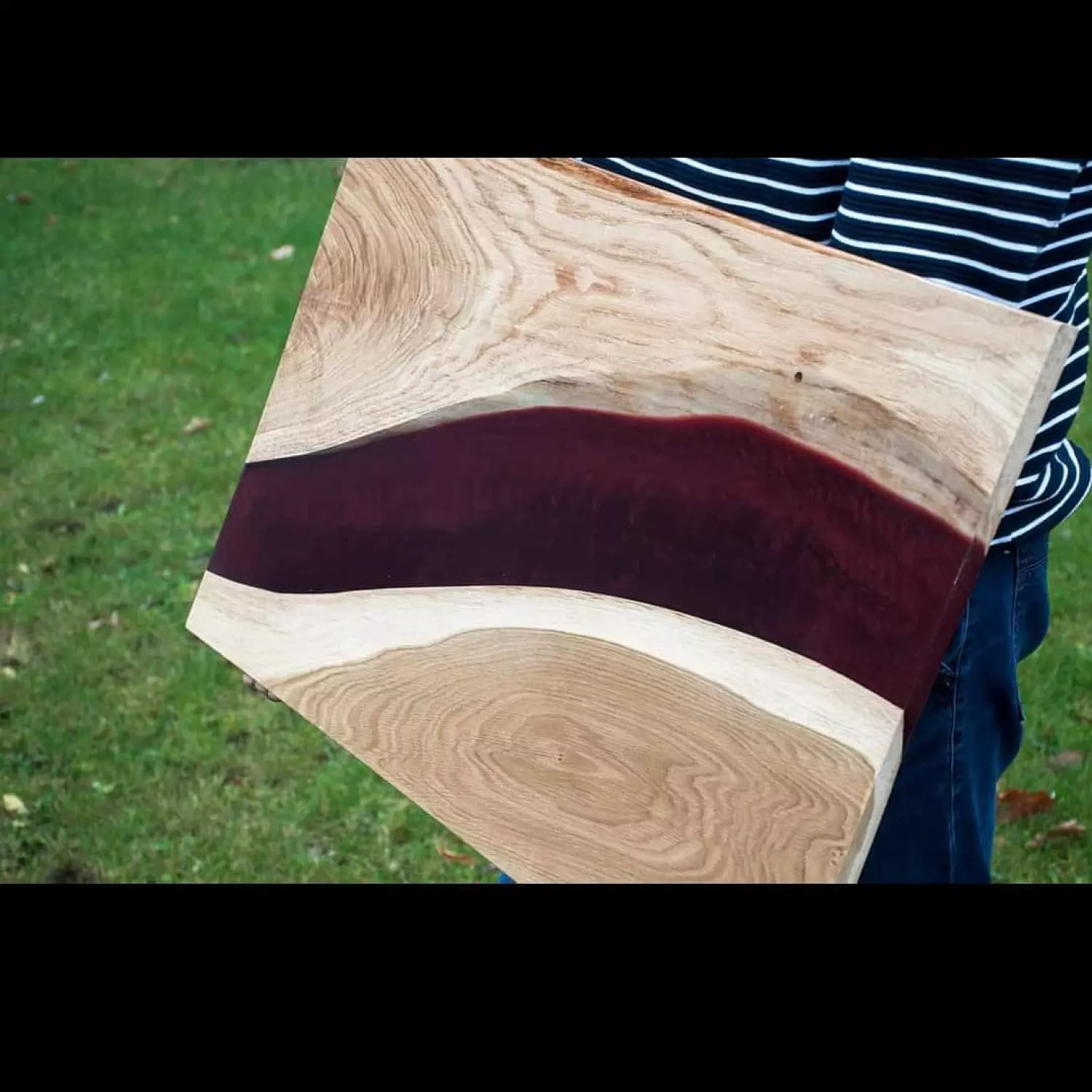 Epoxy resin for tabletops is a clear or colored liquid material that hardens into a strong and glossy surface when mixed with a hardener. It is commonly used to create smooth, durable, and water resistant finishes on wood, metal, and other surfaces. Epoxy resin can enhance the natural beauty of wood by highlighting its grain and creating a glass like finish. It is resistant to scratches, stains, and heat, making it ideal for tabletops, countertops, and decorative projects. The application involves mixing the resin and hardener, pouring it onto the surface, and allowing it to cure, which usually takes several hours to days depending on the product. Epoxy resin can also be tinted with pigments or mixed with other materials to achieve unique designs and effects.