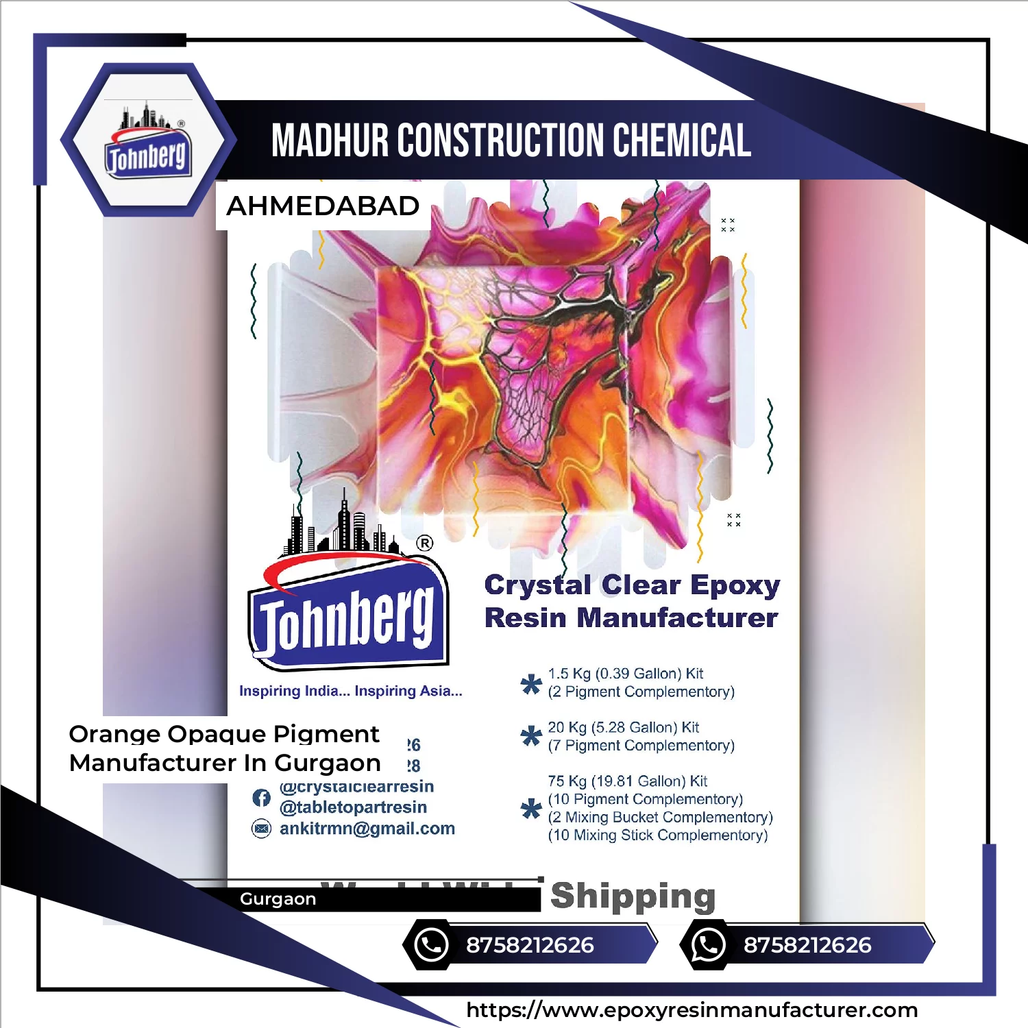 Opaque Epoxy Pigment is a high quality coloring additive designed specifically for use in epoxy resin systems It is formulated to provide strong hiding power and rich solid color appearance even at low dosage levels This pigment is widely used in industrial commercial and decorative applications where consistent color coverage and durability are required