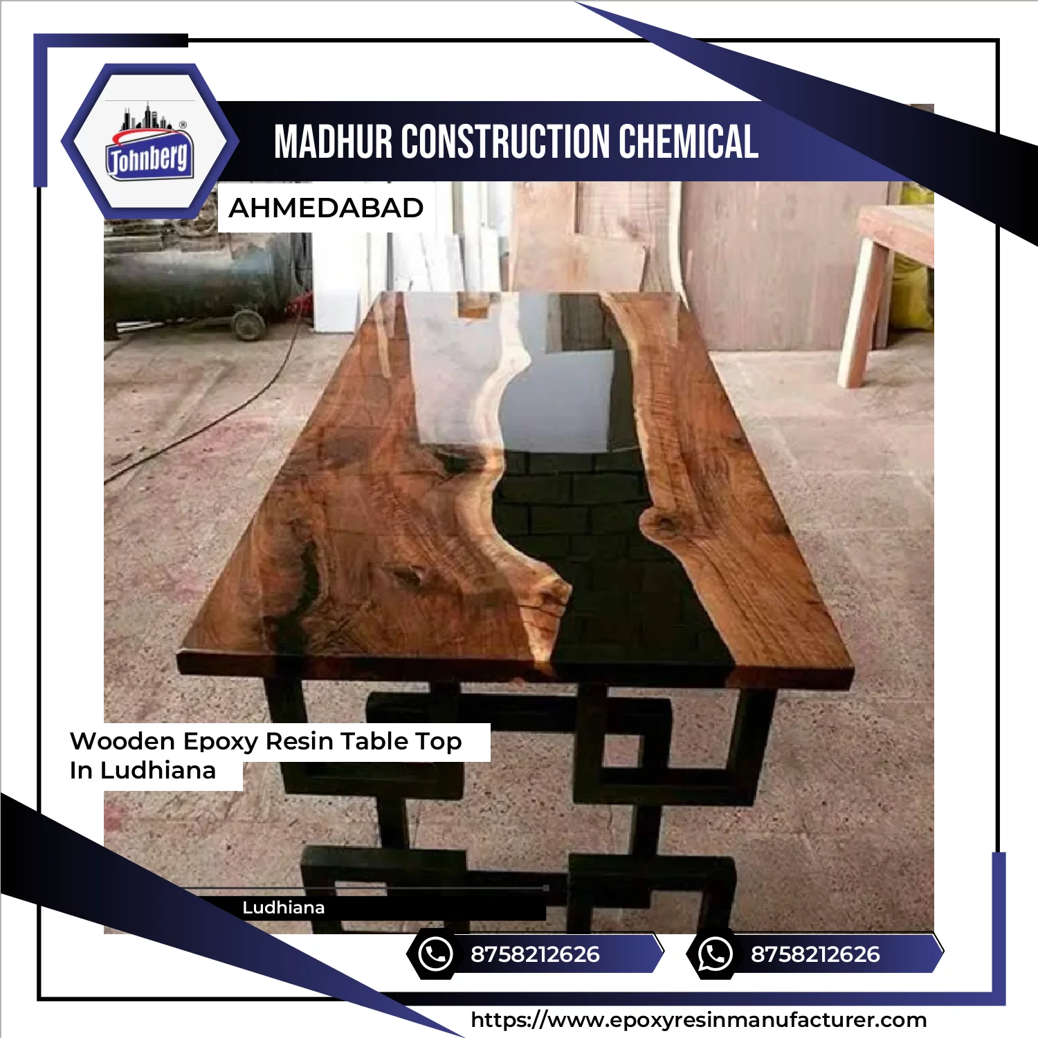 A wooden epoxy resin table top is a piece of furniture that combines natural wood with clear or colored epoxy resin. The wood provides a warm and organic look while the resin fills gaps, cracks, or spaces in the wood, creating a smooth and durable surface. The resin can be transparent or tinted, highlighting the wood grain and giving a glossy finish. This type of table top is resistant to water and stains, easy to clean, and often used as a centerpiece in dining rooms or offices. Each piece is unique because the wood patterns and resin design vary, making it both functional and visually striking.